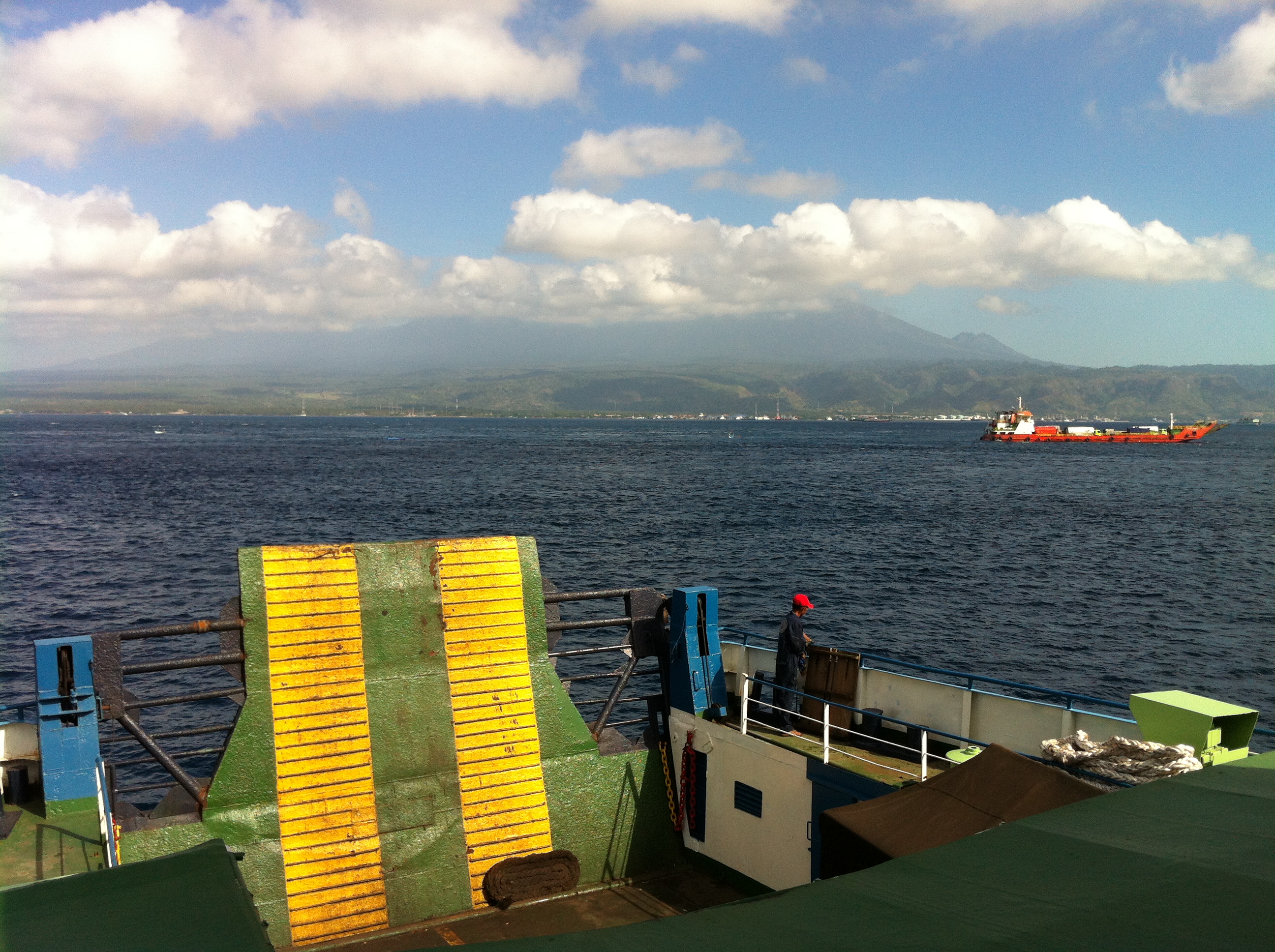 Écrit le 21 July, 2012 par SandrineAprès un bon petit déjeuner tranquille, nous partons à pied prendre le ferry à 9h pour aller sur l’île de Java (Arrivée à Banuywangi – Ketapang, 40 min). Ambiance super kitsh avec dans le ferry, grand écran avec chanteurs type bollywood!