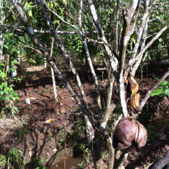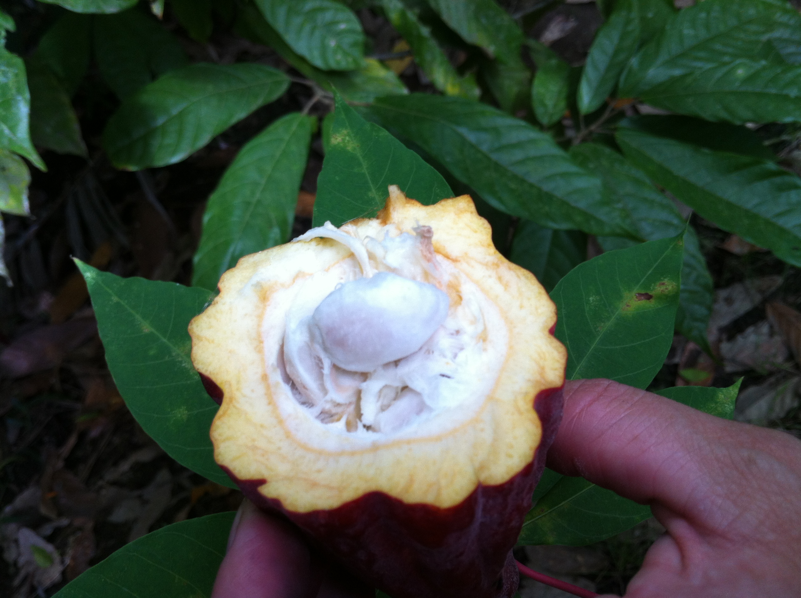 Mr Paing nous fait découvrir les jardins potagers, les plantations de café ou de cacao et nous fait tout déguster (graine de café, fève de cacao, mandarines et autres fruits exotiques).