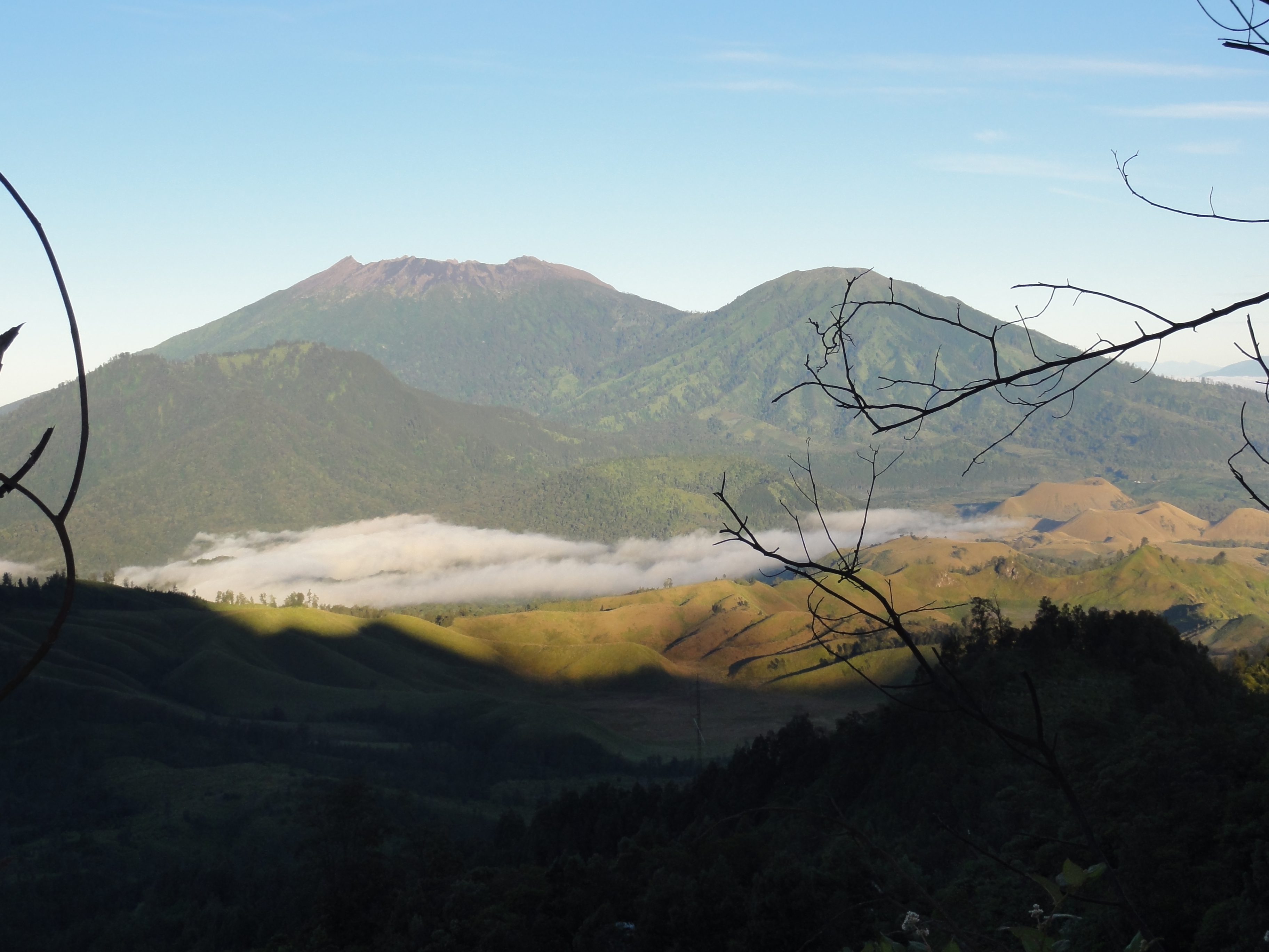 Le temps de se préparer et d’avaler un thé, une assiette de riz et une omelette en compagnie d’un couple de polonais qui viennent d’arriver pour gravir comme nous le Kawa Ijen, nous voilà partis vers 3h30 en jeep pour 1h de route jusqu’au pied du volcan. La piste et très chaotique, impossible de s’endormir dans la voiture. Nous payons 1250000 roupies pour le droit d’accès au site et commençons l’ascension aux premières lueurs du jour (5h30).