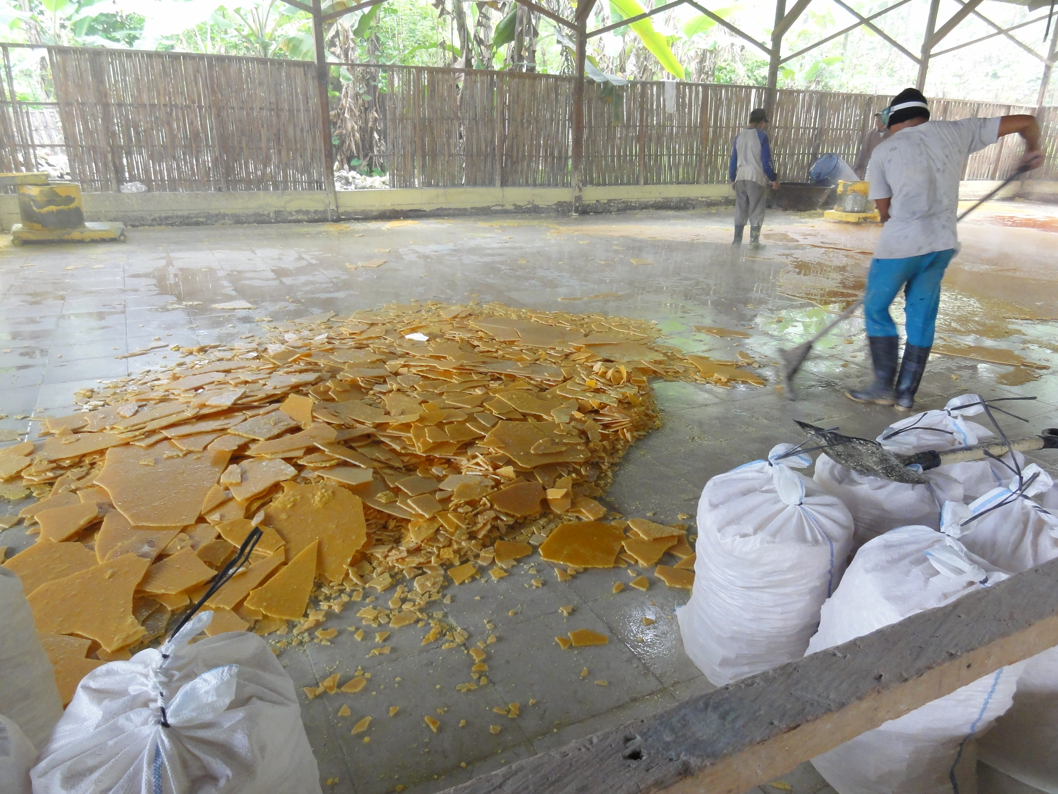 Puis le recassent en morceaux pour le stocker et le transporter dans des gros sacs.