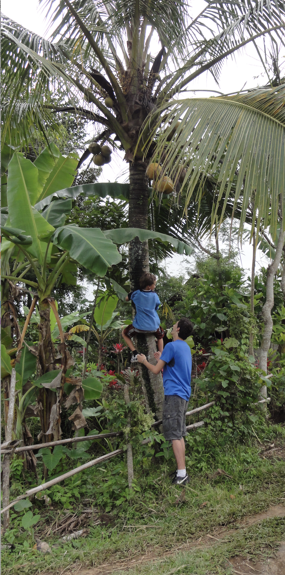 De retour au village, nous dégustons beignets de banane et buvons du lait de coco des noix que nous avons ramassé en chemin.