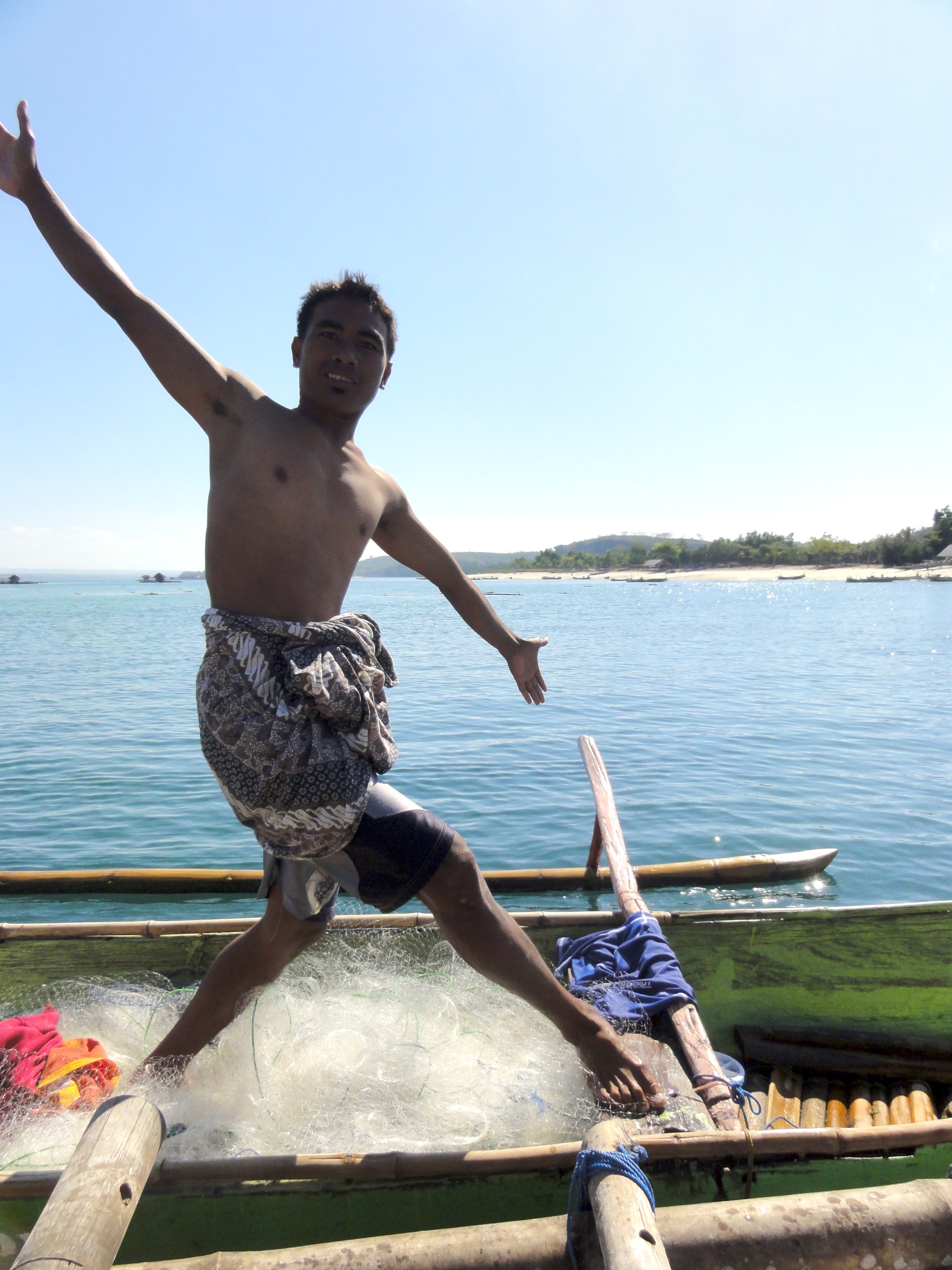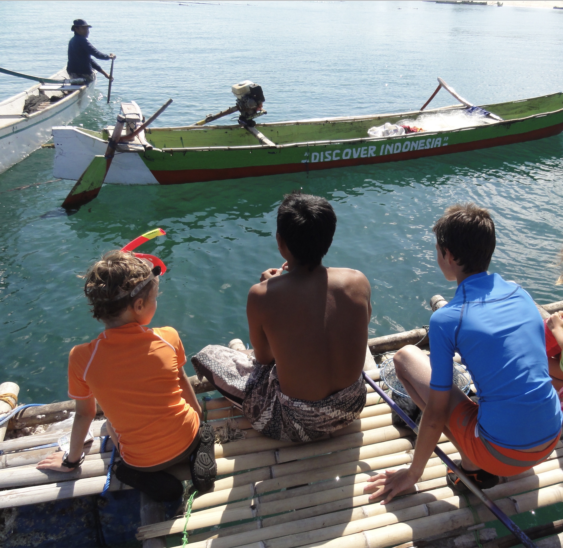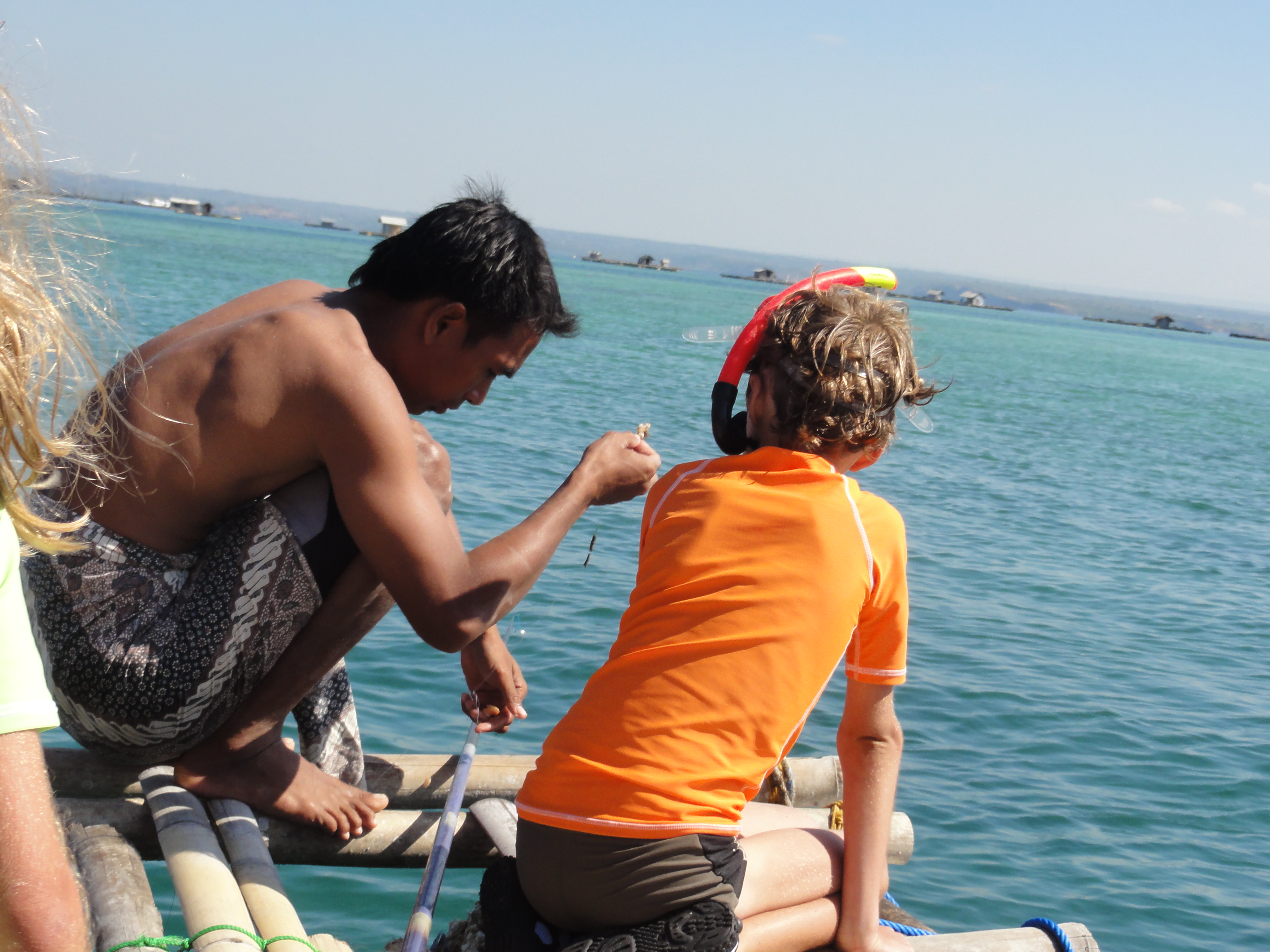 Ce matin, Rumaji nous emmène dès 8h dans son bateau pour aller faire du snorkeling. Il ne faut pas tarder car après le vent se lève et les vagues avec. Il nous fait embarquer dans son bateau de pêcheur et dans un 2ème avec un ami.