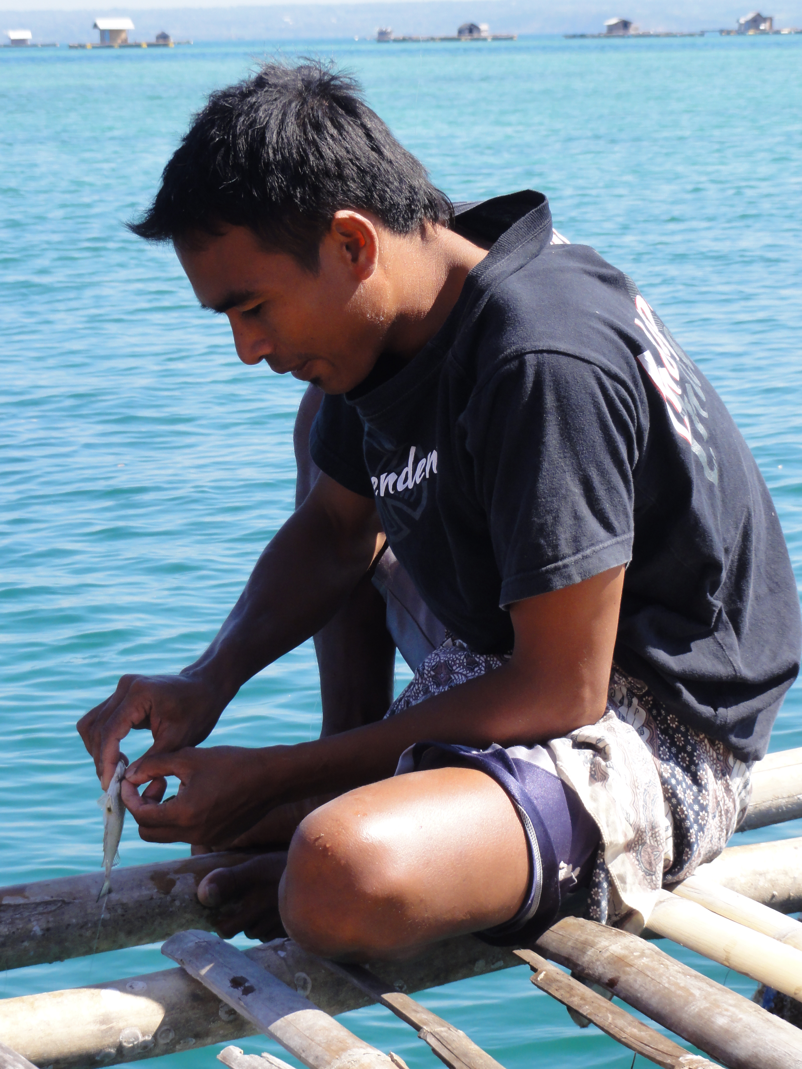 Nous pêchons tous à la ligne. Rumaji est très efficace, il pêchera rapidement 7 petits poissons, nous en revanche, pas très doués, nous n’arriverons à attraper qu’un seul poisson (en fait Thomas!). Ils feront le repas du soir.