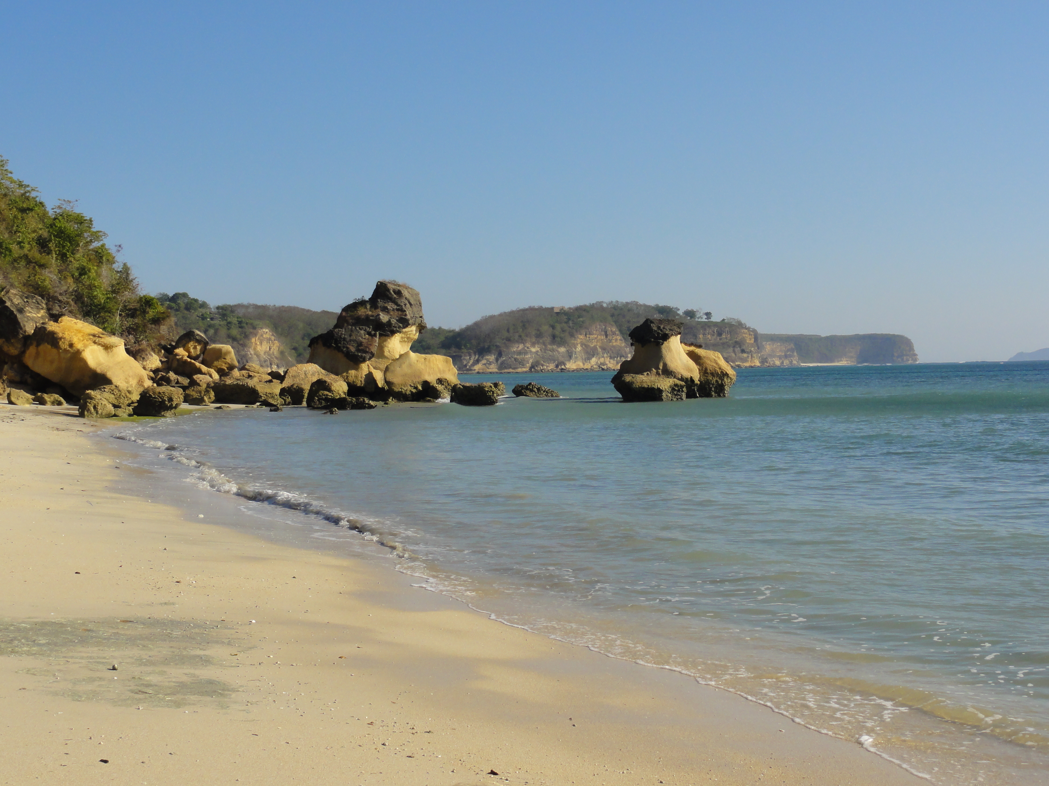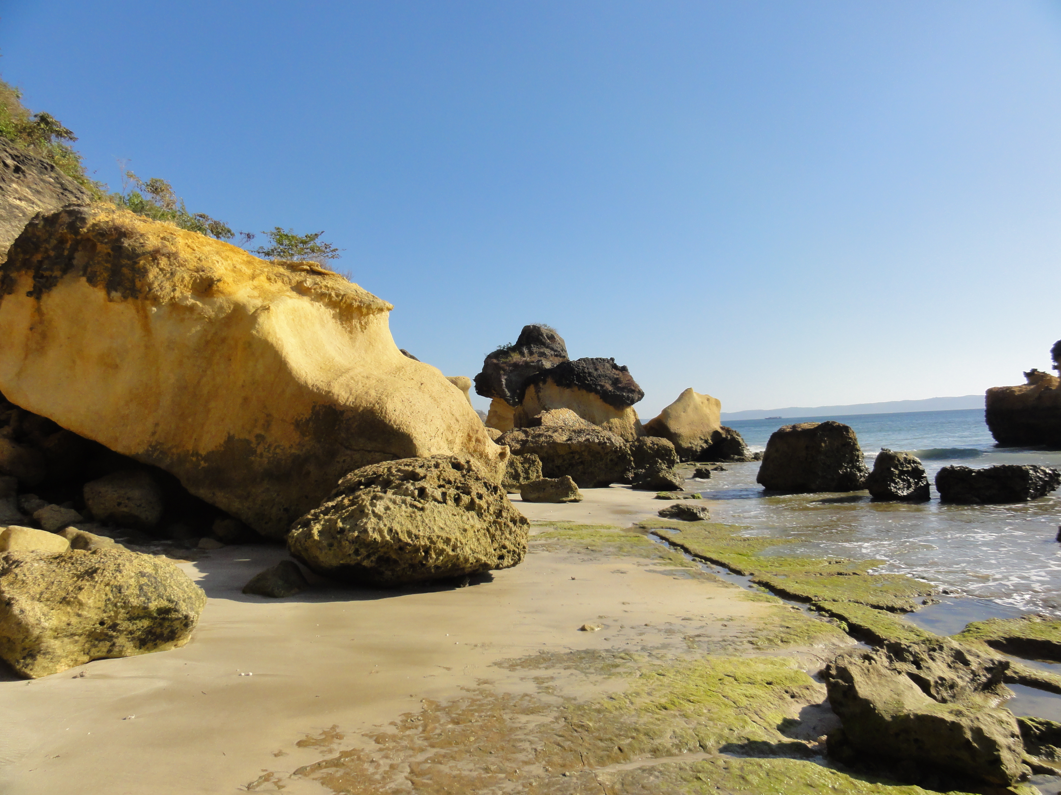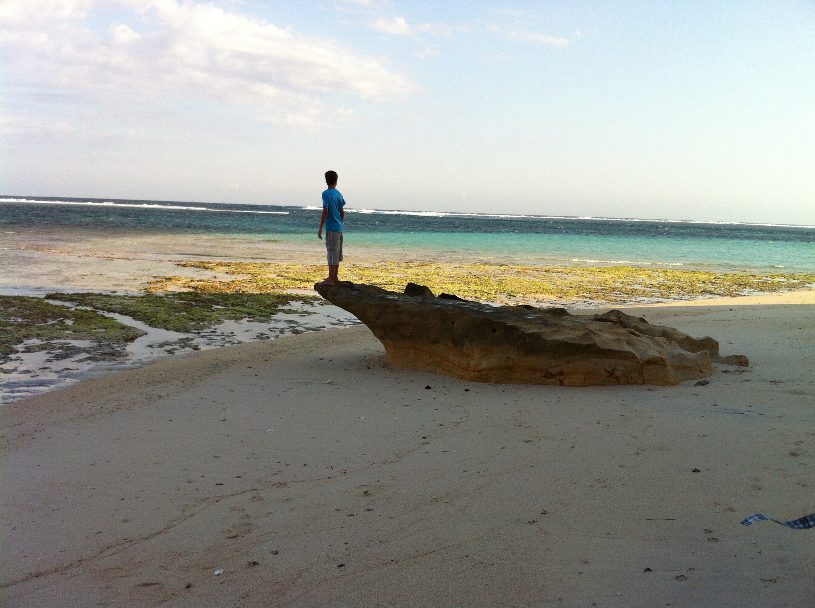 Après un repas de midi toujours très bon et copieux et une petite sieste, nous partons seuls vers 15h découvrir à pied les plages au sud d’Ekas. Nous profitons de la marée basse pour passer de plages en plages. Nous marchons ainsi pendant 2 km. A marée basse, la mer paraît moins jolie et difficile de se baigner.