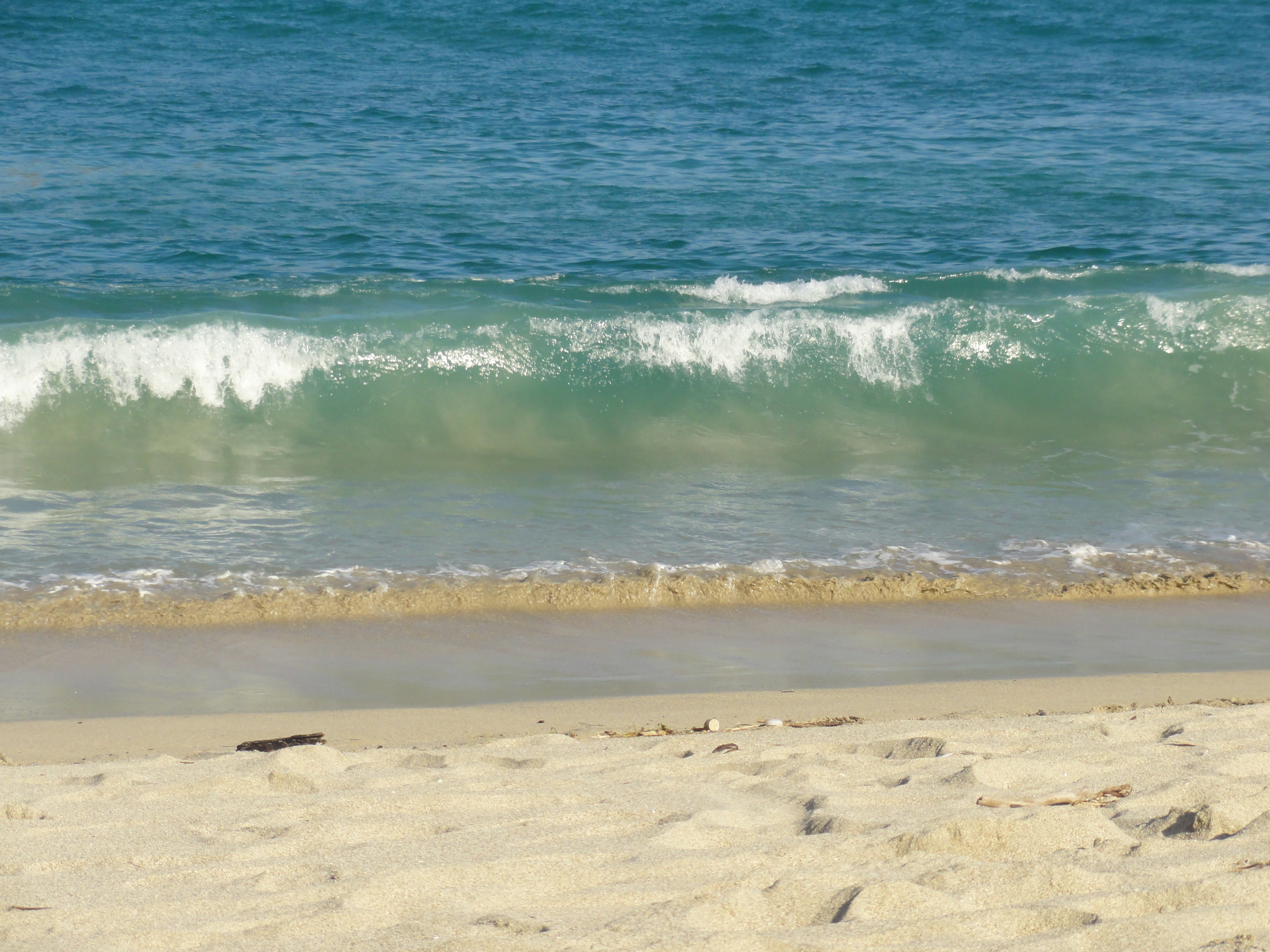 La seule difficulté sur cette plage est de trouver de l’ombre. Nous avons réussi à trouver un petit arbuste en bordure qui nous permet de nous abriter un peu du soleil.