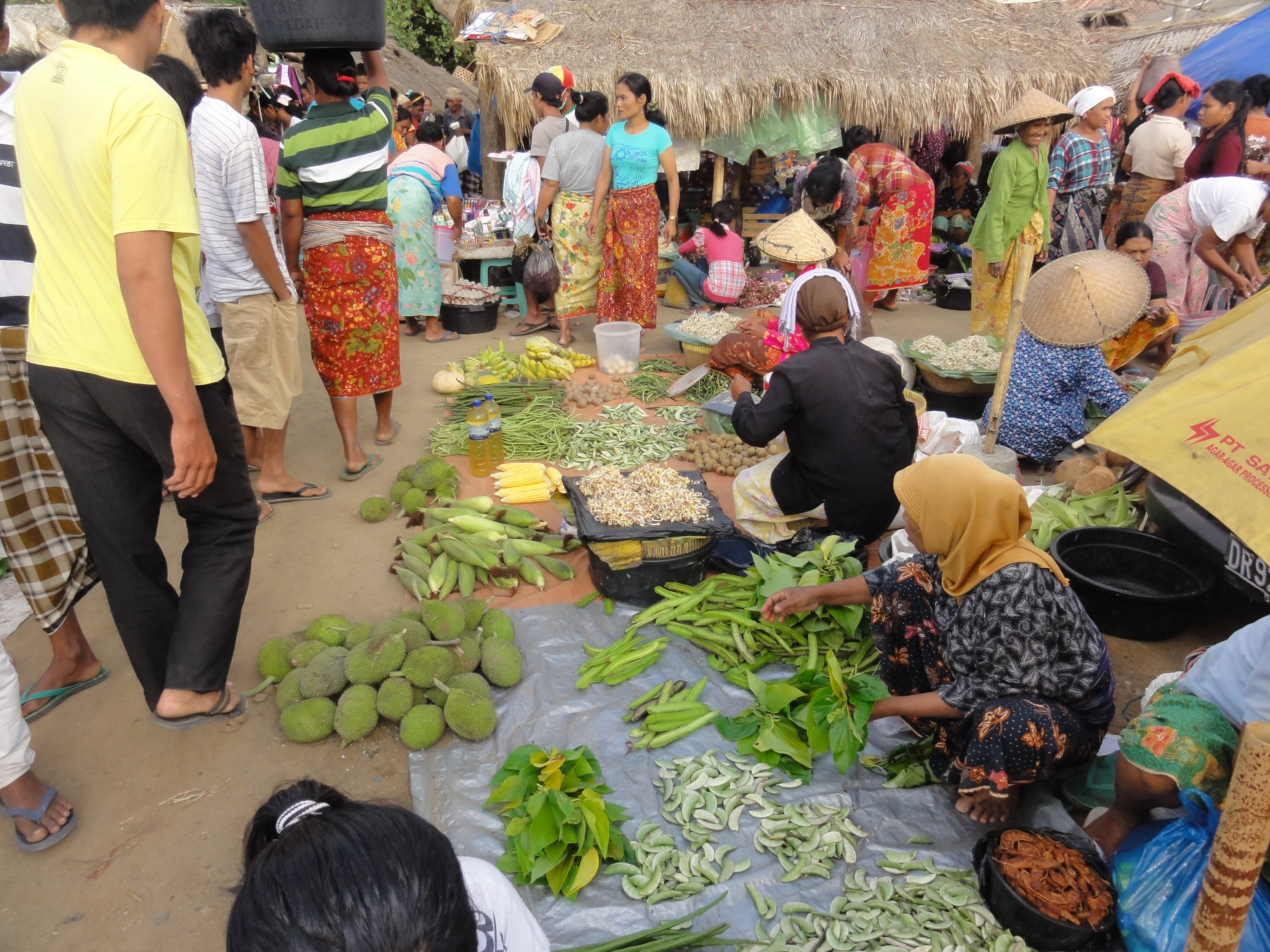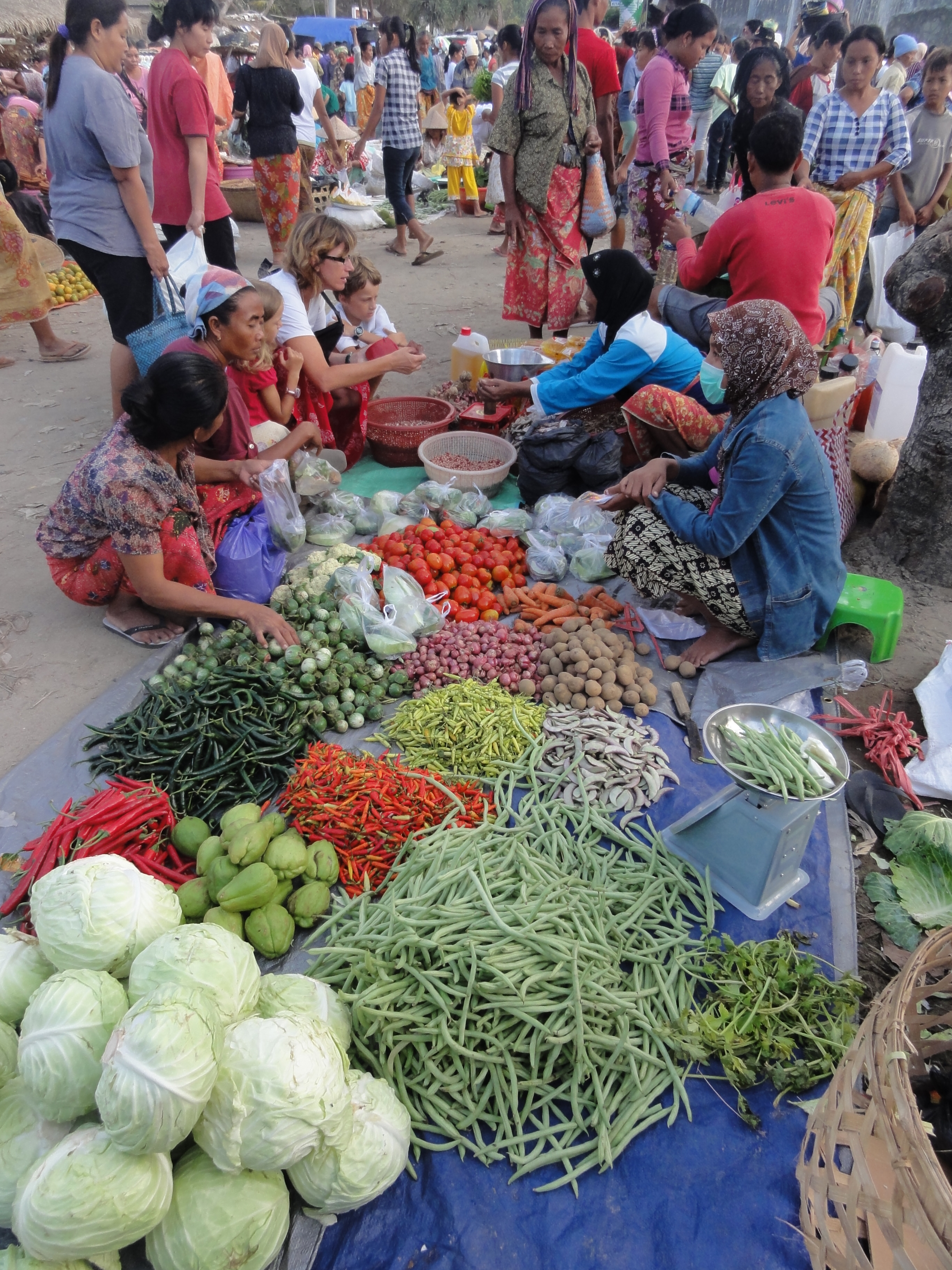 Mais coup de chance, c’est jour de marché au village. Nous allons donc en profiter pour acheter des provisions pour le voyage. En bonus, grosse immersion dans la population locale! Sandrine se retrouve la seule étrangère dans le marché. Elle essaie de se faire comprendre comme elle peut pour acheter des fruits et négocier (tarif touriste quand même). Moment super! Un monde fou.